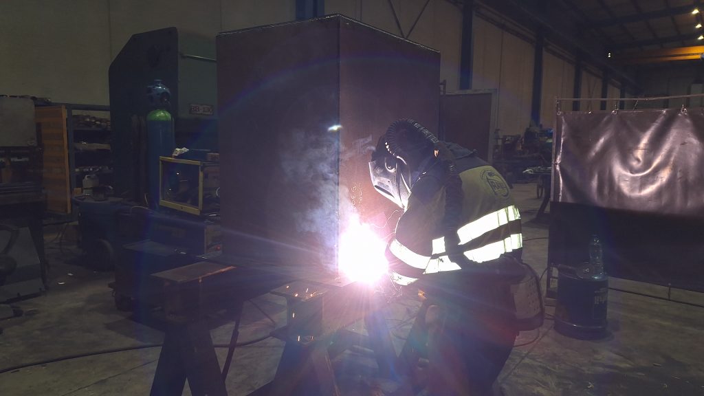 Al segundo día de trabajo, y comprobadas las medidas, se empieza a realizar la soldadura completa y a añadir las ventanas con puertas practicables por si ocurrieran atascos de material.