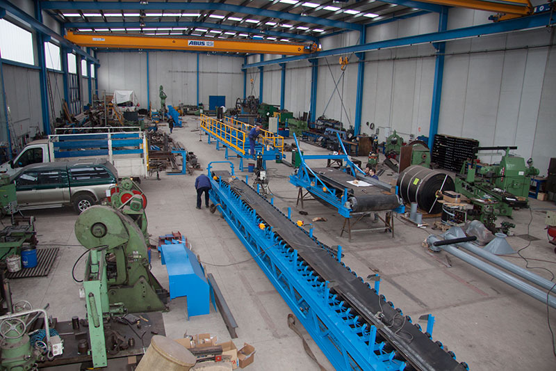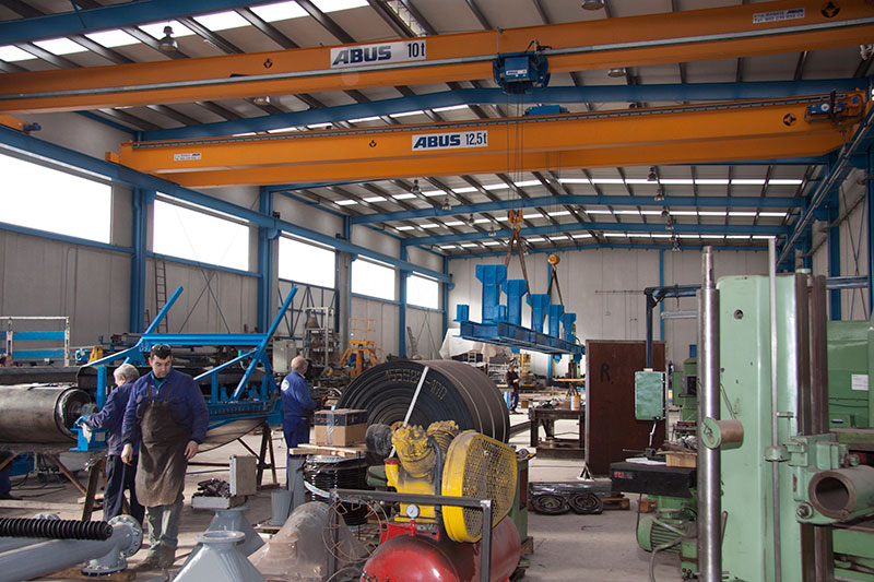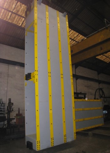 Para sustituir a una vieja tolva simple ya muy deteriorada, que sufría constantes atascos, estamos fabricando una nueva tolva para un cliente del sector de la siderurgia. El interior de la tolva irá recubierta de chapa antifricción, y en el punto crítico del ángulo tendrá una caja de piedras (sistema compuesto por varias pletinas que fuerzan al material a descargar hacia la zona del eje de la salida, al ser esta una tolva con ejes de entrada y salida descentrados).