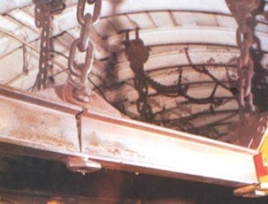 Con la segunda parte de la brida ya preparada (la que se soldará a la zona de descarga cuadrada actual), solo queda montar todo en obra (para lo que la pieza ya lleva montadas del taller una orejetas para el puente grúa) y una vez montada añadirle las piezas de chapa antifricción in situ.