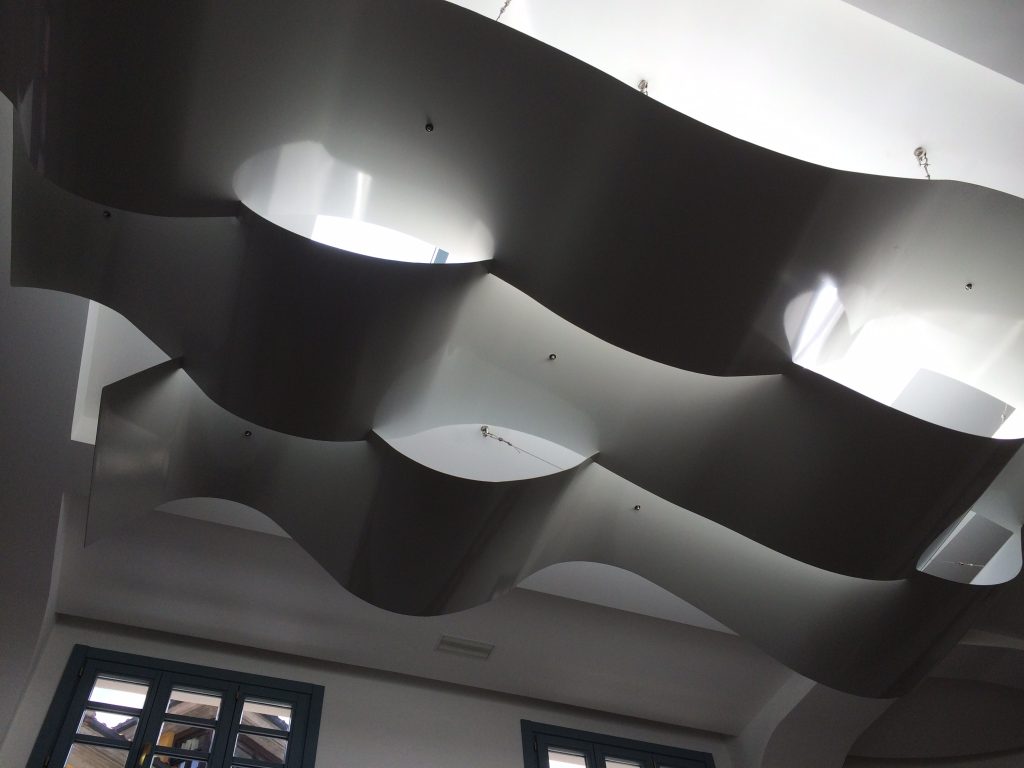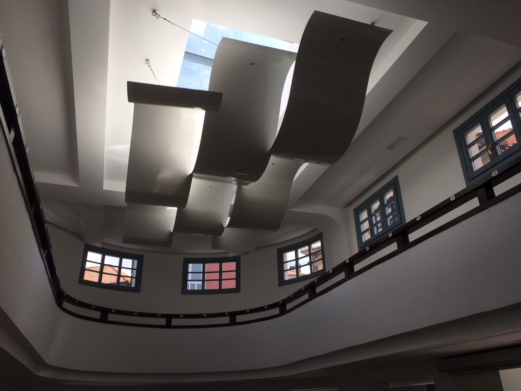 Otro vestíbulo, esta vez en un museo de Llanes, tenía como elemento distintivo del artista la escultura OLAS, fabricada e instalada por Ramso para empresa constructora.