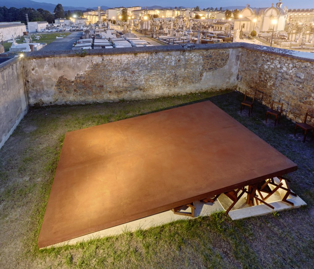 En el cementerio de la Carriona de Avilés fabricamos el diseño para el monumento a la LOSA DEL TIEMPO creado por el artista Carlos Suárez y ejecutada por Ramso en colaboración con Metalaser