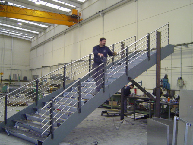 Fabricación de escalera completa en taller, toda metálica, e instalación en obra