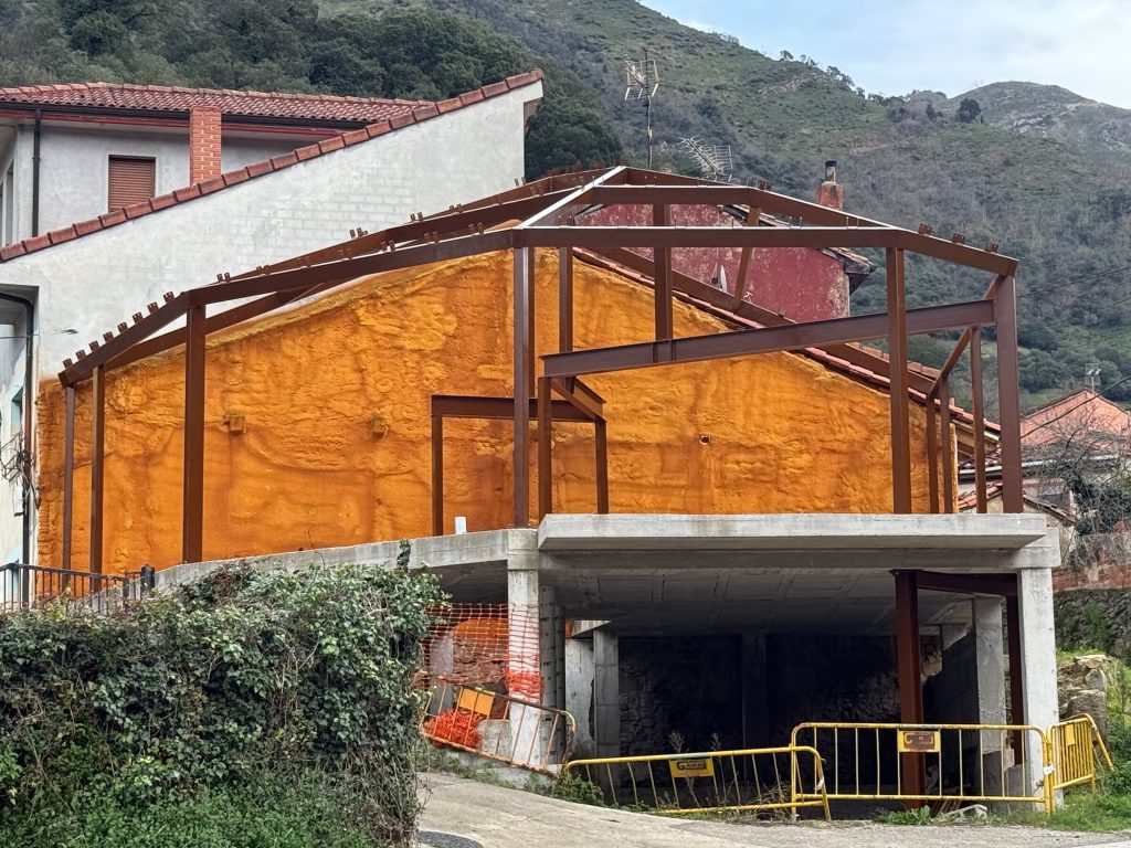 Estructura metálica sobre zapata de hormigón para vivienda unifamiliar, incluyendo perfilería de cubierta y aleros en acero corten.