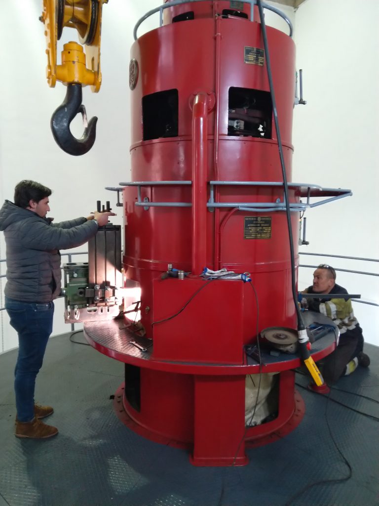 Este veterano alternador trifásico que se ve en las imágenes necesitaba el trabajo de mecanizado en su excicatriz de turbina hidráulica in situ, lo que evitó al cliente tener que desmontar la instalación y trasladar el equipo para su reparación, con el ahorro de costes que ello supone. Disponemos de moderna maquinaria de mecanización in situ, con soporte al equipo con sistemas magnéticos, lo que garantiza unos tiempos de reparación reducidos y un alto nivel de calidad